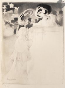 Exemplaire spécialement imprimé pour le juge Ernest Droin (n° 36), un des fondateurs de la Société des Amis des Livres et des Cent bibliophiles. Il a été très bien relié par Noulhac et enrichi de la couverture illustrée du menu de repas donné à l’issue de l’assemblée générale annuelle de la Société des Cent bibliophiles le 13 décembre 1904, et d’une très belle eau-forte originale d’Edgar Chahine, signée et datée 1903 dans la plaque et datée « Juin 1904 » au crayon dans la marge.