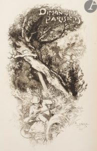 MORIN (Louis). — Les Dimanches parisiens. — Notes d’un décadent. — Paris : Librairie L. Conquet, 1898. — In-8, 257 x 174 : frontispice, (3 ff.), I, 213 pp., (1 f.), couverture imprimée. — Maroquin havane, triple filet doré en...
