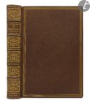 encadrement sur les plats, dos à nerfs orné, dentelle dorée en encadrement à l’intérieur, doublures et gardes de soie moirée havane, doubles gardes, tranches dorées sur témoins, couverture et dos conservés (Franz).