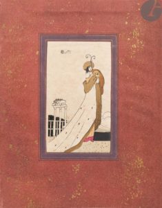 Plaquette publicitaire très rare, imprimée par Tolmer, présentant une couverture à fenêtre laissant apparaître une composition de Charles MARTIN, et contenant un texte de 10 pages de Fabius de Champville sur la Fourrure au théâtre, où il est notamment question de Colette (orthographiée Colette Villy), de Guitry et de différentes pièces représentées en 1911 pour la majorité. Ce texte est illustré de 12 compositions dans le texte et de quelques ornements, non signés. On trouve enfin à part 4 planches en couleurs de modèles de fourrures.