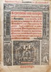 Rare ouvrage sorti des presses de Jean Rémy pour le libraire Simon Vincent et resté inconnu pour de nombreux bibliographes et dont une édition avait été imprimée par Sébastien Gryphe pour le même libraire en 1526. Il est orné d'un titre en rouge et noir dans un bel encadrement de bois gravés, le verso du second titre est orné d'un grand bois intitulé Arbor Substitutionum, et de quelques grandes lettrines imagées. Nombreuses annotations manuscrites anciennes, la reliure est abimée et l'exemplaire est partiellement dérelié, défauts, cernes, petit trou en marge de 6 feuillets sans manque de texte. (USTC 51227, les 44 premiers feuillets seulement) (Pettigrew n° 56772).