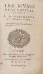 Relié à la suite du même : LES MUSES DE LA NOUVELLE FRANCE à Monseigneur le Chancelier. Paris, Jean Millot, 1609. [6]-62 pages (sur 66) (pages 57/58-65/66 manquantes). Edition originale de ce recueil de poèmes célébrant tous des événements en Nouvelle-France.