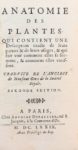 « First to observe sex in plants, the birth of microscopic anatomy of plants (Horblit, 100 books famous in science). Cette seconde édition, traduite par Louis Le Vasseur n'est autre que la première (de 1675), avec un nouveau titre. (Barbier I-173) ; elle s'ouvre par un beau titre gravé et est ornée de 14 FIGURES SUR CUIVRE non comprises dans la pagination montrant des végétaux vus au microscope. La page 17 est en double, tache sombre sur le premier plat, une charnière fendue.