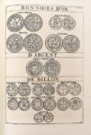 Titre-frontispice, nombreuses vignettes dans le texte et 59 PLANCHES HORS TEXTE DE MONNAIES. Seconde édition (l'originale en 1690) de cet important traité, et la première à contenir la «dissertation historique» qui occupe la seconde partie avec son propre titre daté. (Brunet, III, 904). Petit découpage au titre, papier roussi, un mors fendu. 2 tables manuscrites ont été rajoutées dans l'exemplaire.