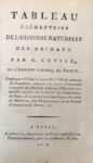 CUVIER (Georges). TABLEAU ELEMENTAIRE DE L'HISTOIRE NATURELLE DES ANIMAUX.