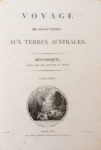 PÉRON (François). VOYAGE DE DECOUVERTES AUX TERRES AUSTRALES exécuté par ordre de S.M. l'empereur et roi. Partie historique rédigée par M. F. Péron. Atlas par MM. Lesueur et Petit.
