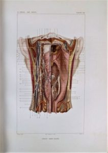Bel atlas qui a nécessité 7 ans de recherches à Béraud chirurgien et anatomiste (1823-1865), comprenant 109 PLANCHES COLORIEES reproduisant 162 figures dessinées d'après nature par M. Bion et finement gravées sur acier. Chaque planche est accompagnée de son texte explicatif. Rares rousseurs.