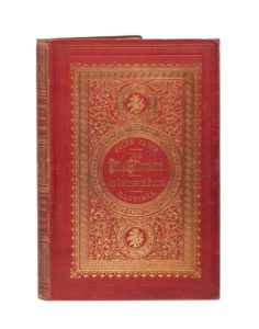 [Mers et Océans] Une ville flottante par Jules Verne. Illustrations de Férat. Paris, Bibliothèque d'Éducation et de Récréation, J. Hetzel et Cie, sd (1873). Grand in-8° simple. Cartonnage éditeur en pleine percaline rouge vermillon «aux bouquets de roses» du 3e type. Charles Magnier Relieur. Tranches dorées. Gardes bleu. Imprimerie Gauthier-Villars.