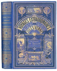 [Afrique] Cinq semaines en ballon/[Allemagne/Islande] Voyage au centre de la Terre par Jules Verne. Illustrations de Riou et Montaut puis Riou seul. Paris, Bibliothèque d'Éducation et de Récréation, J. Hetzel Éditeur, sd (ca 1879).