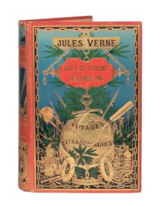 Grand in-8° double. Cartonnage éditeur en pleine percaline polychrome «au globe doré» du 3e type. Engel relieur. Tranches dorées. Gardes bleu foncé. Six planches hors-texte en couleurs. Imprimerie Gauthier-Villars.