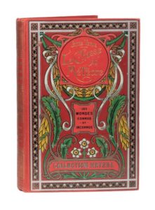 Grand in-8° simple. Cartonnage éditeur en pleine percaline polychrome «aux feuilles d'acanthes et à la pastille rouge». Ch. Magnier et ses Fils relieurs. Tranches dorées. Gardes bleu. Six planches hors-texte en couleurs. Imprimerie Gauthier-Villars.