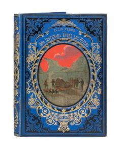 Il faut noter la particularité réservée à cette édition mexicaine en percaline bleu cobalt : la petite image ovale collée est, contrairement à la version française, en rouge (cf. lot n°100) ! Sans doute par souci d'économie, l'éditeur Bouret n'avait fait imprimer que des vignettes rouges...