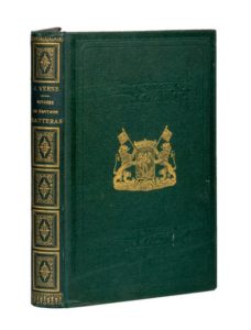 Grand in-8° double. Cartonnage en pleine percaline vert sapin à gros grains dite «aux fermoirs» frappés à froid sur les deux plats. Au centre du 1er plat, les armes de la ville de Bruxelles frappées à l'or. Dos à six caissons dorés très ornés avec les mentions «J. Verne/Voyages/du capitaine/Hatteras». Sans mention de relieur. Tranches blanches. Gardes grises non doublées. Imprimerie Gauthier-Villars. Étiquette pour la distribution des prix du 14 août 1875. Quelques rousseurs. Coins frottés. Sinon, très bel exemplaire particulièrement séduisant.