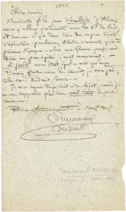 • Emmanuel CHABRIER. — 2 L.A.S., Paris 1885-1888, à Mlle Marthe Petitdemange ; 1 page petit in-8 et demi-page in-12, adresses au dos. [35-35 et 88-14]