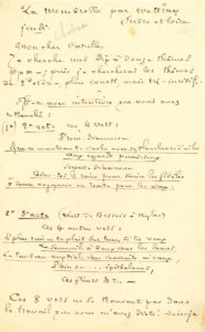 « Je cherche mes dix à douze thèmes p[rinci]p[au]x » – ; puis je chercherai les thèmes de 2d ordre –, plus courts, mais très incisifs. Il cite 4 vers retranchés au 2e acte entre les deux diaconnesses, ainsi que 4 autres de Briséïs à Hylas au 3e acte. « Ces 8 vers ne se trouvent pas dans le travail que vous m’avez dicté. Dois-je les rétablir ou n’en tenir aucun compte ? »…