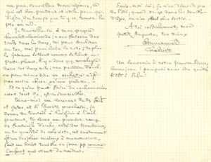 • Emmanuel CHABRIER. — L.A.S., La Membrolle 29 mai 1892, à Auguste Hirsch ; 2 pages et demie in-8. [92-65]