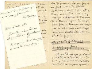 – Il compose une mélodie sur un sonnet de Baudelaire sur le thème d’une fugue de Bach dont il cite 4 mesures…