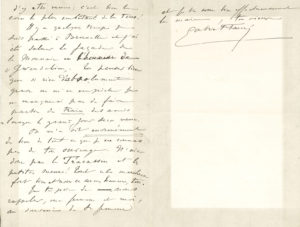 • [Emmanuel CHABRIER]. — Gabriel FAURÉ (1845-1924). — L.A.S., Néris-les-Bains [fin août ? 1885], à Emmanuel Chabrier ; 2 pages et quart in-8 (deuil). [85-29n.]
