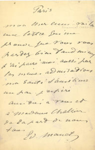 « Mon cher ami – voilà une lettre qui me prouve que vous vous portez bien tant mieux j’ai passé moi aussi par les mêmes admirations. Ma santé s’améliore un peu j’espère »…