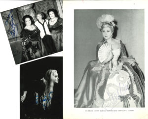 CHANTEUSES.— 7 photographies signées ; formats divers. Montserrat Caballé, Régine Crespin, Miriam Gauci, Gwyneth Jones, Catherine Malfitano (extrait de programme signé aussi par 3 chanteurs), Mady Mesplé, Shirley Verrett.