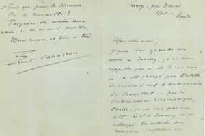 – 13 décembre [1894]. « Cela te dirait-il de venir chanter des fragments de Cherubini et de Franck le jour de Noël à Donnemarie, chez Husson. Nous y allons tous en bande. […] Husson me charge de te dire qu’il serait content de te voir figurer parmi les ténors »…