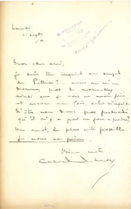 Je suis très inquiet au sujet de Pélléas ?... vous ne m’en donnez pas de nouvelles ainsi que je vous en avais prié, et encore une fois, cela m’inquiète. N’êtes-vous donc pas persuadé qu’il n’y a pas un jour à perdre ? Un mot, le plus vite possible je vous en prie »...
