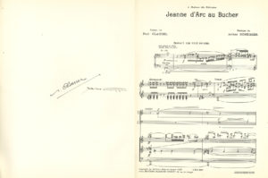 Arthur HONEGGER.— Jeanne d’Arc au bûcher. — Poème de Paul Claudel (Paris, Éditions Maurice Senart, 1939) ; in-fol., broché, couv. papier parcheminé impr. en rouge et noir.