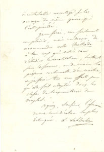 – Londres 25 Juillet 1831, à Carlo Severini, au Théâtre Italien à Paris, le chargeant d’acheter pour 500 ducats de rente ; salutations à Rossini et Robert.