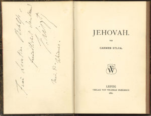 Sur la page de garde de cette édition du poème allemand Jehovah de la Reine de Roumanie, inspiré par la légende du Juif errant, Liszt a inscrit la dédicace :