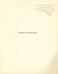 Édition originale de la réduction pour piano et chant par l’auteur. Envoi autographe signé (sur la page de dédicace à Misia Sert) :