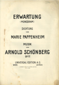 Arnold SCHÖNBERG (1874-1951). — Erwartung (Monodram). — Dichtung von Marie Pappenheim. Op.17. (Wien, Leipzig, Universal-Edition, 1916) ; in-fol., rel. demi-chagrin havane, couv. sup. conservée (couv. salie, quelques petites taches).