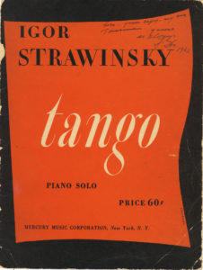 Igor STRAWINSKY (1882-1971). — Tango. — Piano solo (New York, Mercury Music Corporation, [1941]) ; in-4, 4 p. (pag. 3-6) sous couverture impr. en couleurs (quelques légers défauts à la couv.).