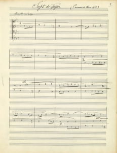 Copie sur l’original » (cahier de 12 pages in-fol. plus titre, cachet encre de Xavier Tomasi compositeur de musique). Chœur à 4 voix avec réduction de l’orchestre (et indications d’instrumentation) sur des vers de Catulle Mendès, pour le concours d’essai au Prix de Rome de 1928.