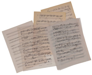 - la partition gravée sur calque d’Écorces II.