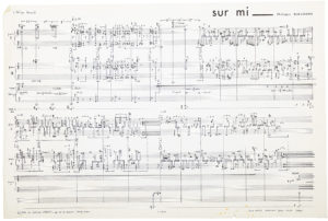Philippe BOESMANS (né 1936). — Manuscrit musical autographe, Sur Mi, 1974 ; 7 feuillets 36,3 x 54 cm. — Œuvre pour deux pianos, orgue électrique et percussion (crotales et tam-tam).
