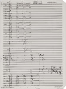 Philippe BOESMANS (né 1936). — Manuscrit musical autographe, Concerto pour piano et orchestre, 1978 ; 59 feuillets 42,5 x 32,5 cm. —Partition d’orchestre de ce Concerto pour piano, créé en septembre 1978 au Festival des Nuits de Septembre de...