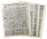 Le manuscrit est soigneusement noté à l’encre de Chine sur papier calque à 24 lignes, présentant généralement 5 systèmes de 4 portées par page. Il est daté en fin « 26/1/1989 ».