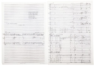 Philippe BOESMANS (né 1936). — Manuscrit musical autographe signé, L’Eau douce du pardon ; titre et 27 feuillets 42 x 30 cm. — Partition d’orchestre de cette cantate sur un poème de Rainer Maria Rilke. Commande de la Société...