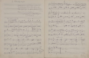 Le manuscrit est noté à l’encre noire sur papier à 12 lignes. Il est signé en fin et daté 1947. De nombreux doigtés sont indiqués. On relève une mesure biffée et corrigée en deux mesures. Chaque pièce est précédée d’une épigraphe poétique.