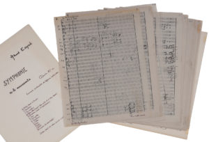 Ahmed ESSYAD (né 1938). — Manuscrit musical autographe signé, Symphonie en 2 mouvements ; 84 feuillets 35,5 x 27 cm. — Partition d’orchestre de cette Symphonie, commande du Ministère des Affaires culturelles, publiée chez Jobert en 1971.