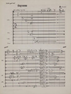 Lucien GUÉRINEL (né 1930). — Manuscrit musical autographe, Diagramme pour 12 cordes et clavecin, 1978-1979 ; 16 feuillets 35 x 27 cm.
