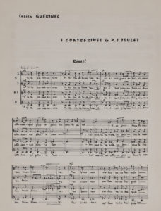 Lucien GUÉRINEL (né 1930). — Manuscrit musical autographe, Trois Contrerimes de P.J. Toulet, [1979] ; 6 feuillets (paginés 2-7) 35 x 27 cm.