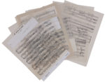 Le manuscrit est soigneusement noté à l’encre de Chine sur papier calque sur des systèmes de deux portées (trois pour la dernière), avec les titres sur des collettes dactylographiées.