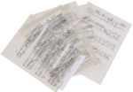 Le manuscrit, soigneusement noté à l’encre de Chine sur papier calque, a servi pour le clichage, avec des collettes de papier blanc pour occulter les portées non écrites, et les dates dactylographiées.