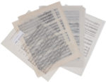 Le manuscrit est soigneusement noté à l’encre de Chine sur papier calque, avec généralement 4 systèmes de 4 portées par page, et quelques corrections par grattage. Il est daté en fin « Marseille, 27-01-/5-03-2001 ».