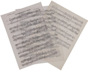 Le manuscrit est soigneusement noté à l’encre de Chine sur papier calque, avec 6 systèmes de 2 portées par page ; il est daté en fin « Saint-Bonnet de Joux, 9 avril 2003 ».