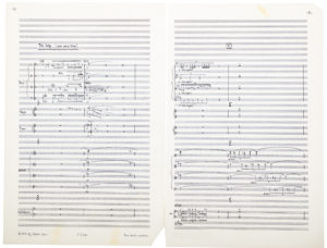 Partition d’orchestre de ce Concerto pour quatuor à cordes et orchestre, commande du Service des Créations musicales de l’ORTF, créé le 17 novembre 1970 au Grand Auditorium de l’ORTF par le Quatuor Parrenin et l’Orchestre philharmonique sous la direction du compositeur.