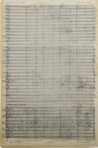 Version avec orchestre, 1970-1975 ; [2]-40 feuillets 55,5 x 37,5 cm, crayon sur papier calque à 42 lignes. L’orchestre comprend : 2 flûtes, piccolo, 2 hautbois, cor anglais, 2 clarinettes, clarinette basse, 2 bassons, contrebasson, 4 cors, 3 trompettes, 3 trombones ténor, tuba, timbales, glockenspiel, xylophone, vibraphone, crotales, harpe, célesta, percussion, et cordes. En tête, Kurtz a écrit :