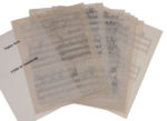 Le manuscrit est soigneusement noté au crayon noir sur papier calque avec généralement 3 systèmes de 4 portées par page.