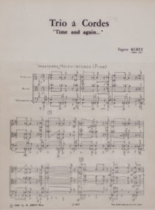 Eugene KURTZ (1923-2006). — Manuscrit musical autographe, Trio à cordes “Time and again…”, 1984-1985 ; 31 feuillets 35 x 27 cm.